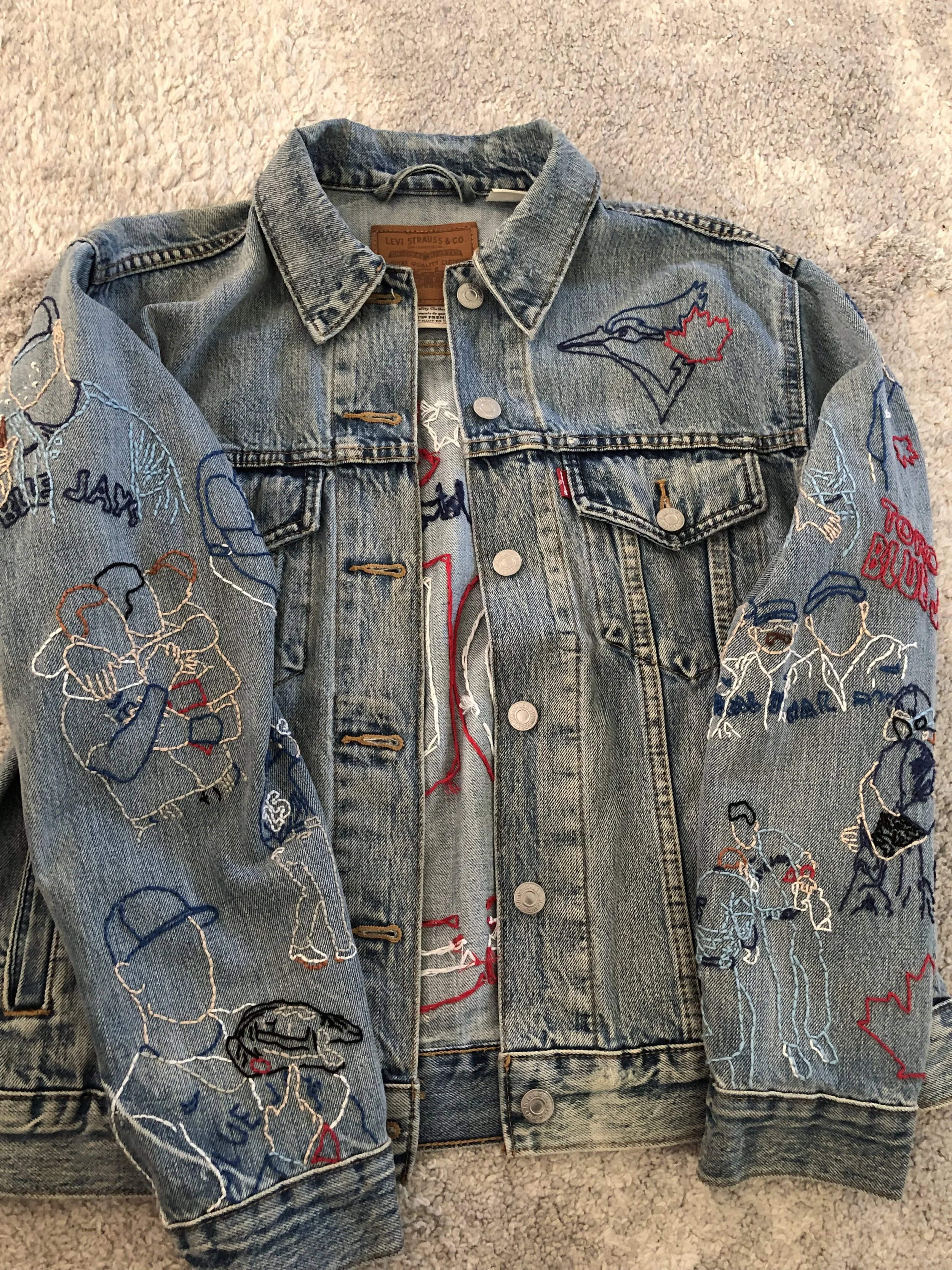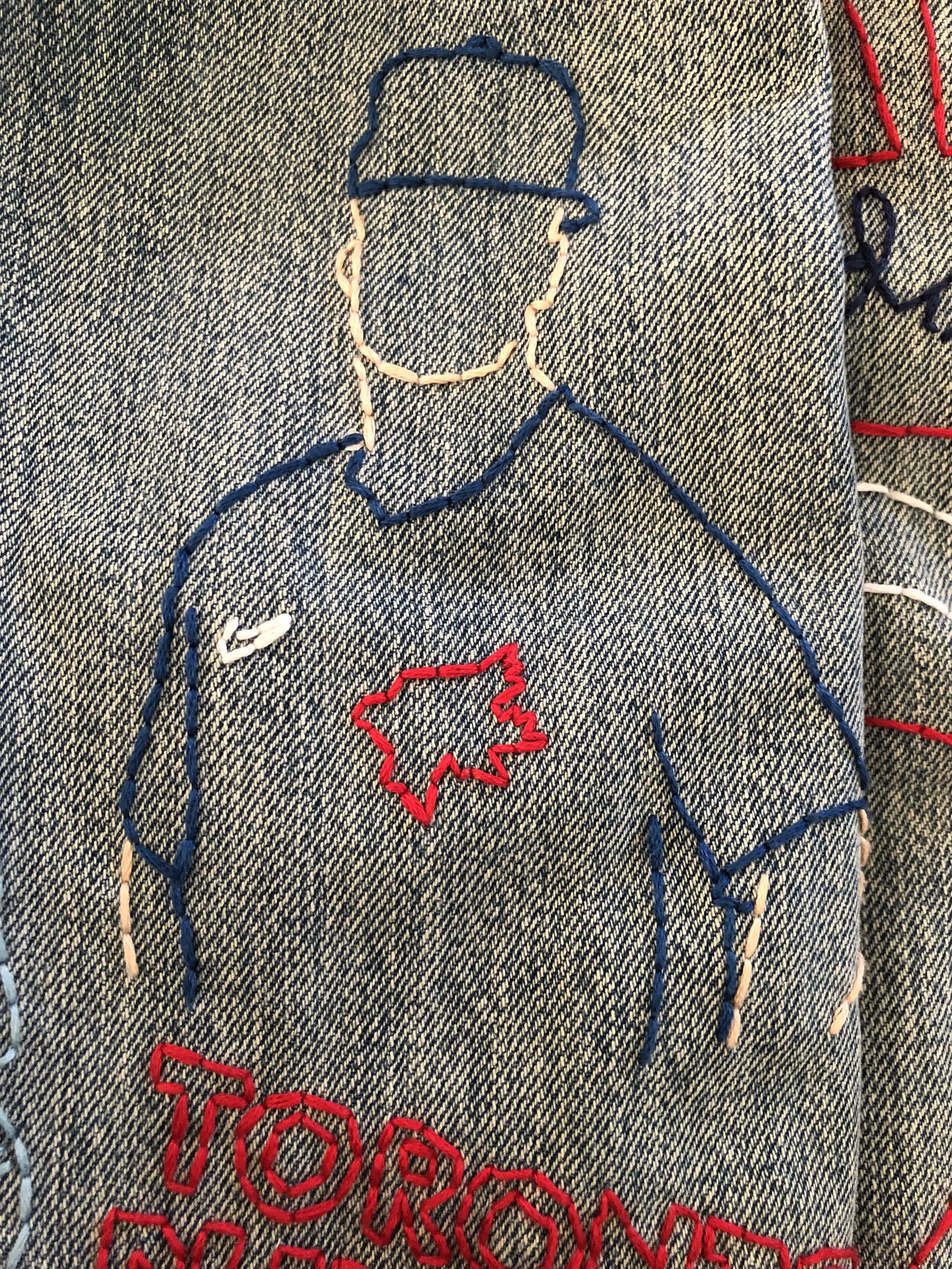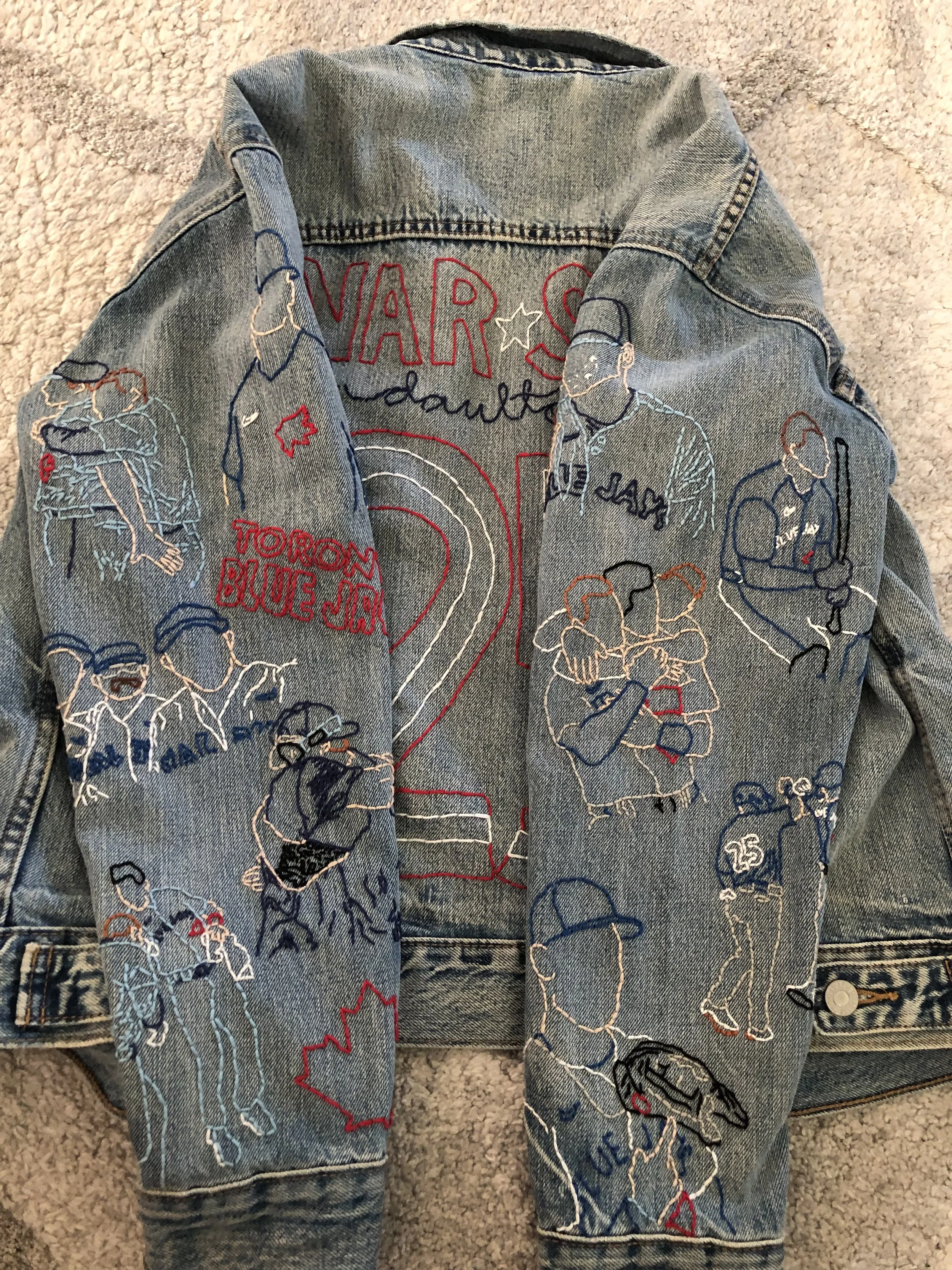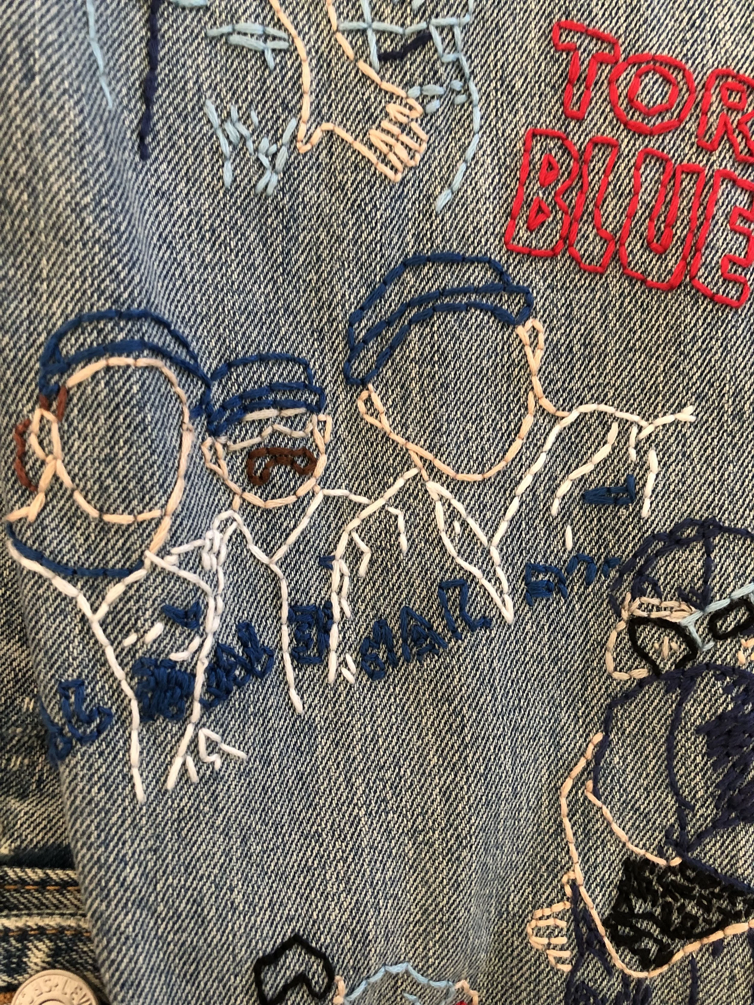A hand-embroidered denim jacket inspired by the 2023 Toronto Blue Jays season, designed to reflect the team’s energy and capture key moments from its players. It also represents what it feels like to be part of the fan culture surrounding the team.