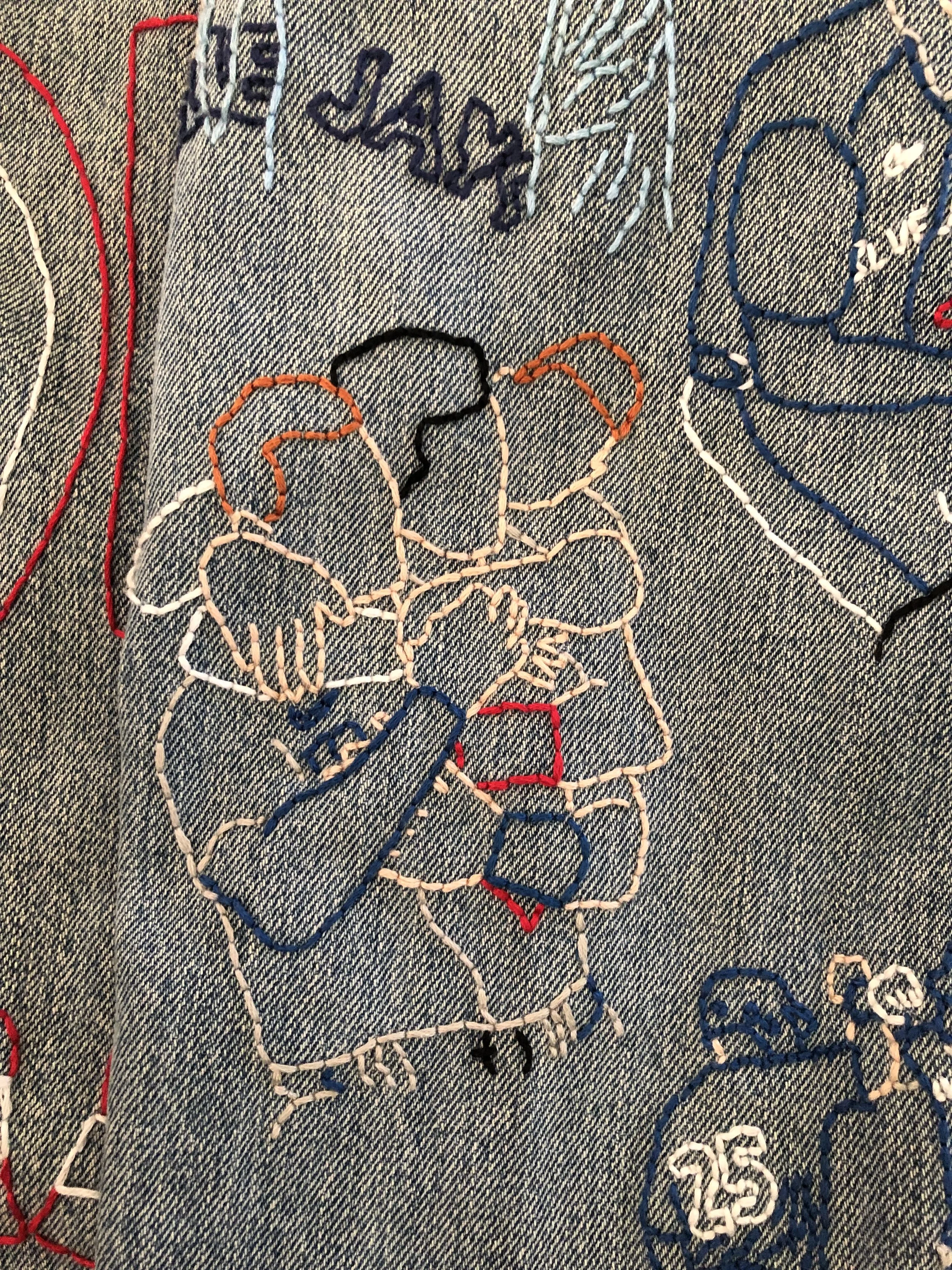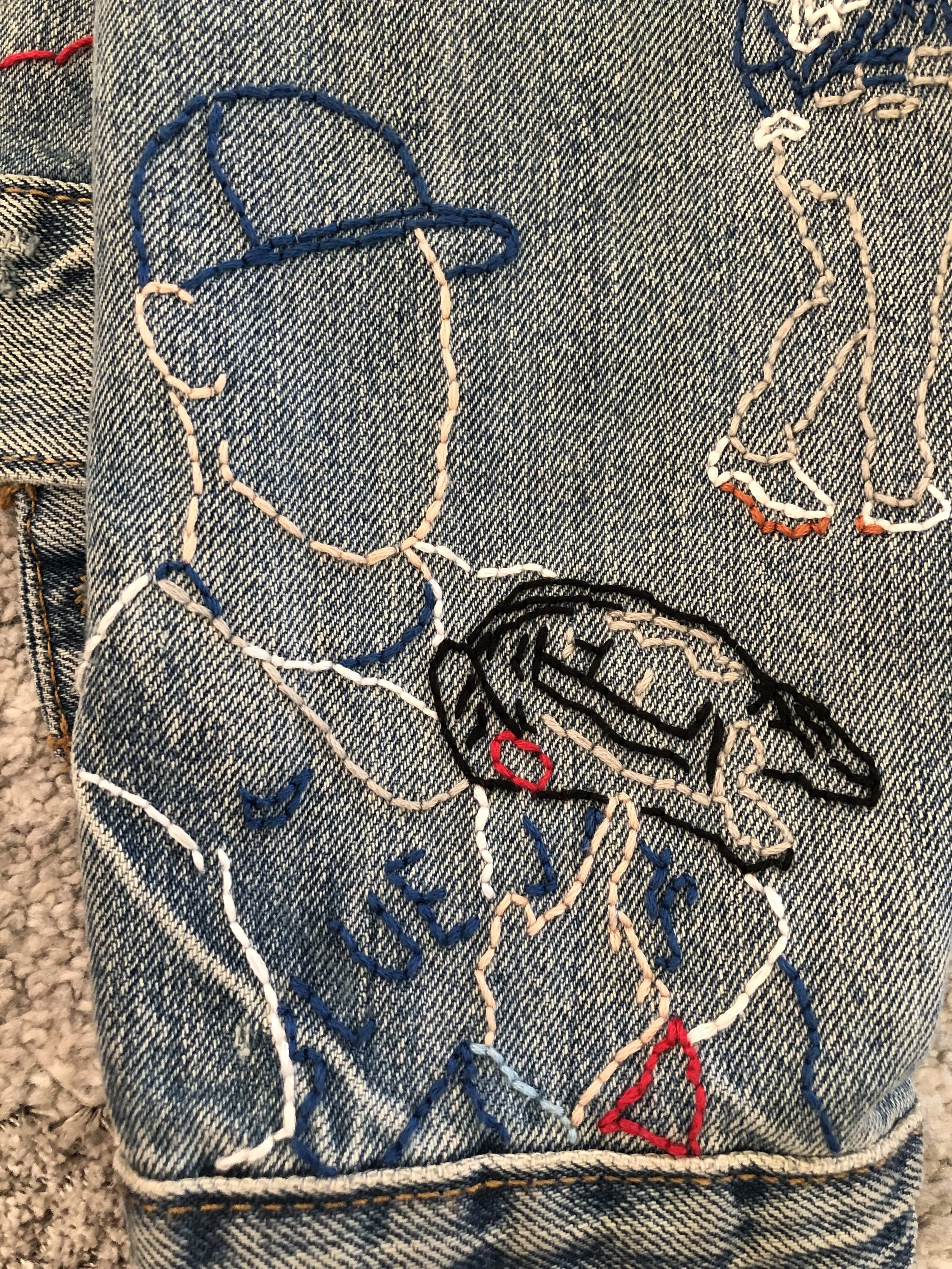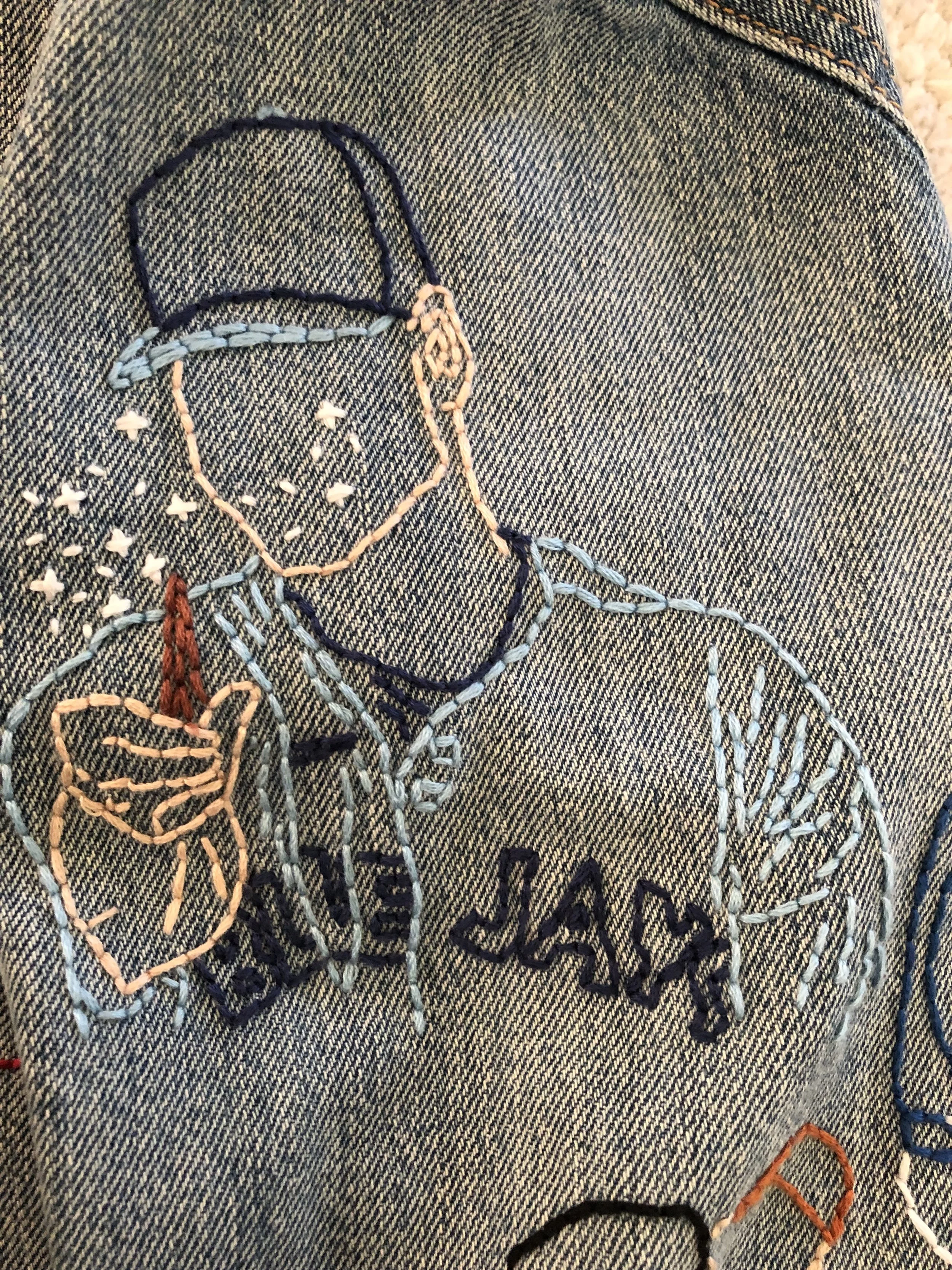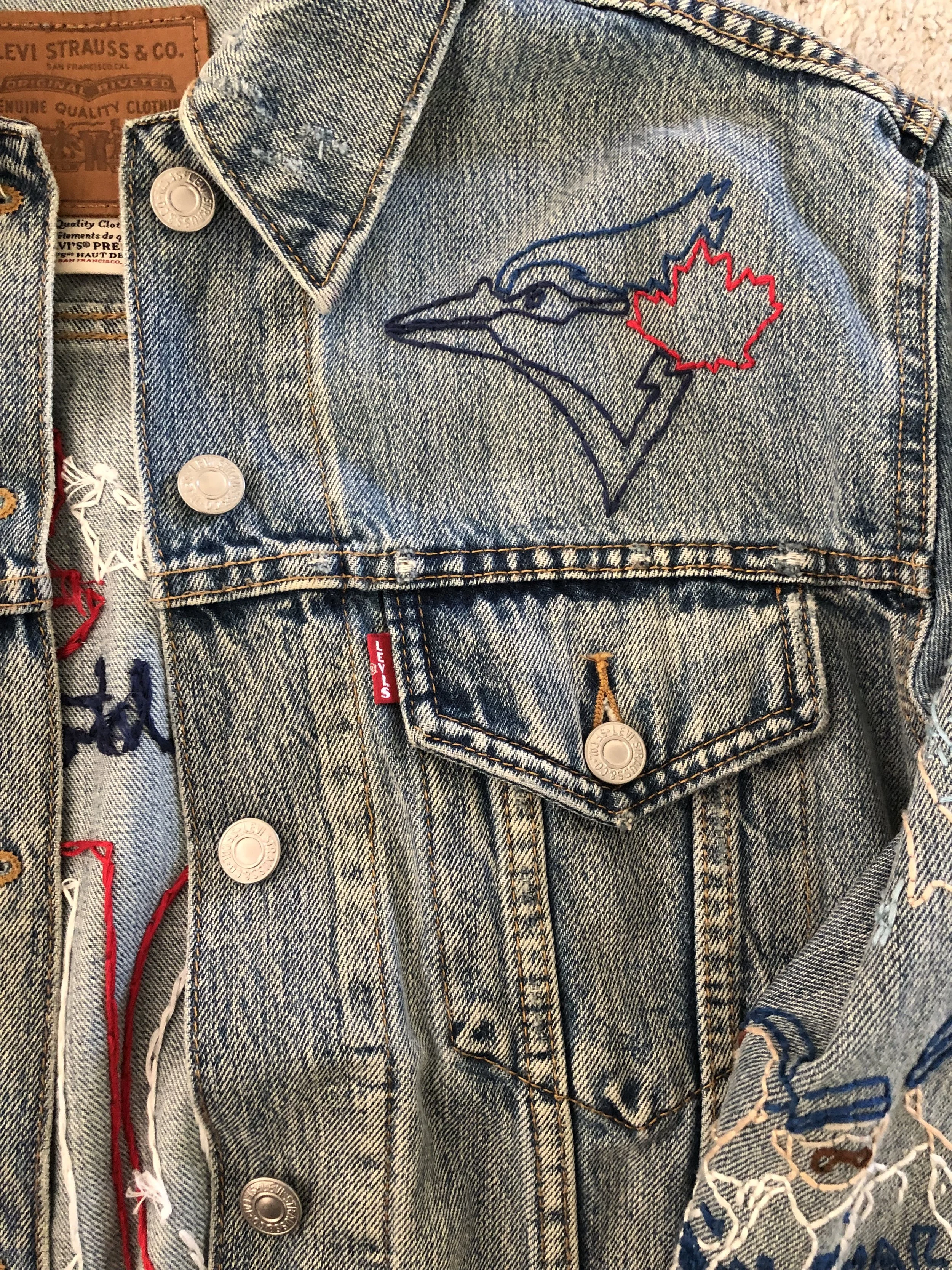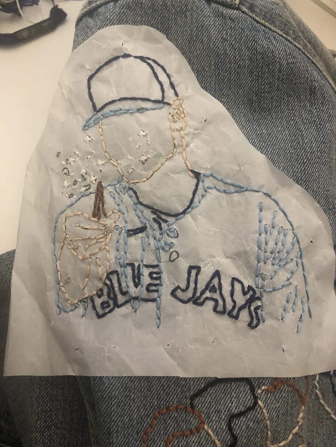 A hand-embroidered denim jacket inspired by the 2023 Toronto Blue Jays season, designed to reflect the team’s energy and capture key moments from its players. It also represents what it feels like to be part of the fan culture surrounding the team.